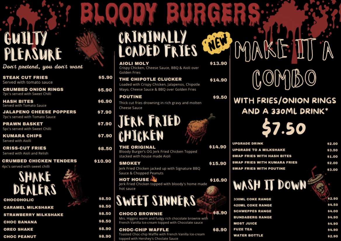 Families also appreciate the diverse menu, which includes options like kids' burgers that Codie Takitimu found to be cooked to perfection. The cheerful and efficient staff ensure that every meal is served to high standards, enhancing the overall experience. This commitment to quality and service truly sets Bloody Burgers apart.